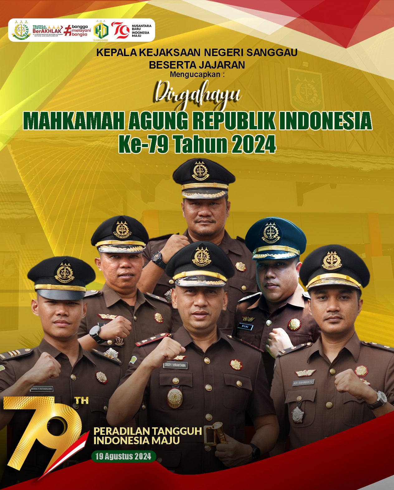 Kejari Sanggau Beserta jajaran mengucapkan Dirgahayu Mahkamah Agung Republik Indonesia yang ke-79 tahun 2024.